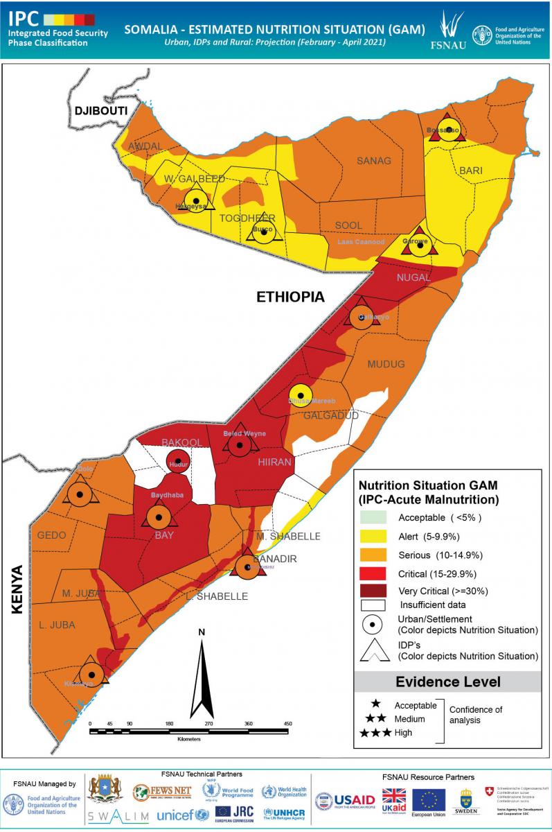 - Somalia Estimated Nutrition Situation Projection: February - April, 2017 (Download PDF, 582 KB)